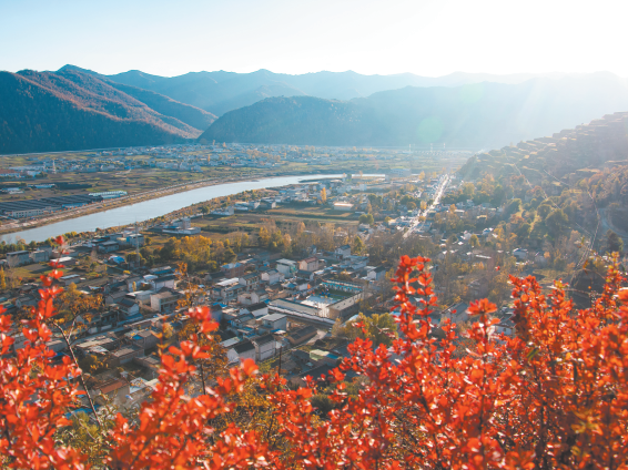 初冬的岷县,抬眼望山,层林褪去了往日的翠绿,换上了入冬的盛装,洮水岷山间的杏树在光影的映衬下,黄如金、红似火、棕褐橘黄美如画。