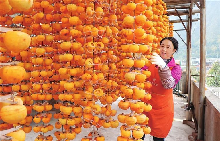 走在贾昌村中,红彤彤的柿子树与穿起“雪衣”的柿饼相映成趣,既是摄影爱好者、游客打卡的美景,也是村民增收致富的实景。这枚浸润着立冬暖阳与匠人匠心的“黄金果”,承载着舌尖上的“甜蜜”,驱动着乡村振兴的步伐。