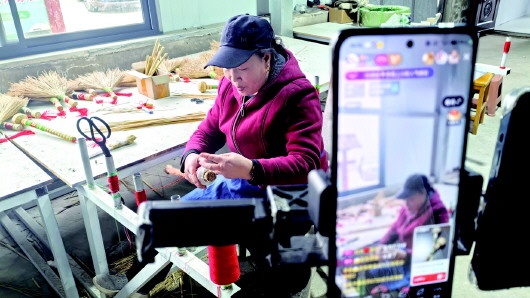 半小时光景,一把小巧玲珑、穗头饱满、把手缠着“福”字彩线的工艺笤帚便在她手中诞生了。