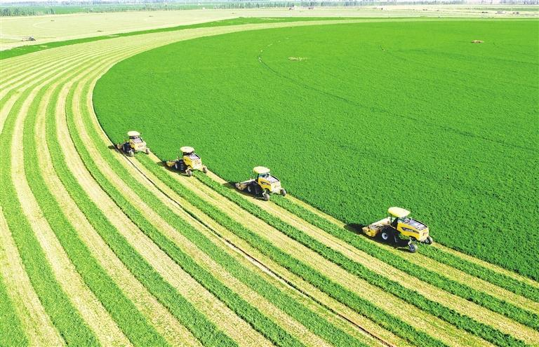 凉州区邓马营湖亚盛田园牧歌万亩节水优质苜蓿种植基地。