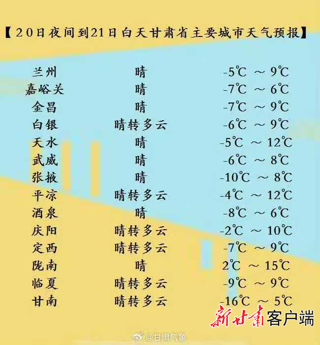 - 2025年11月20日冷空气减弱 甘肃大部为晴或多云天气 气温明显回升