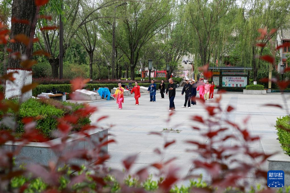 2025年5月8日,健身爱好者在平凉市柳湖公园打太极拳。新华社发(吴希会摄)