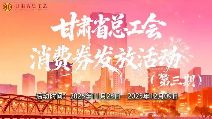 为深入贯彻落实促消费、稳增长政策部署,持续提升职工生活品质,甘肃省总工会倾情推出新一轮消费券大放送!继中秋国庆消费券活动广受好评后,我们再次集结“陇工惠”APP,于11月25日至12月9日,连续三期重磅加码,累计投放15万张消费券!购物、观影、订餐、打车四大高频场景一网打尽;真补贴、真实惠,激活你的消费潜力;工会暖心福利,助力本地消费“热”起来。机会有限,福利不等人!动动手指,登录“陇工惠”APP,一起把实惠领回家,为甘肃消费添把火!