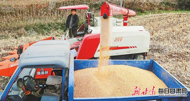 初冬时节,两当县鱼池乡双场村农户用多功能收割机采收高山区玉米。新甘肃·甘肃日报通讯员 李旭春
