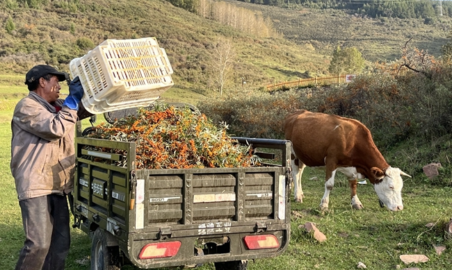 目前,“野山坡”所用的沙棘果,大部分是野生的。每年秋收后,当地年纪较大、未外出务工的村民便上山采收沙棘。“这项工作让当地村民在农闲时节也能持续获得收入。”张贵鑫说,“我们每年能帮助3000多户农户,每户增收两三万元。”