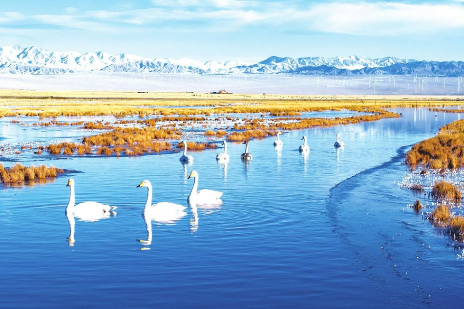 - 2025年11月14日【图片新闻】天鹅在阿克塞县阿伊纳乡苏干湖悠闲觅食