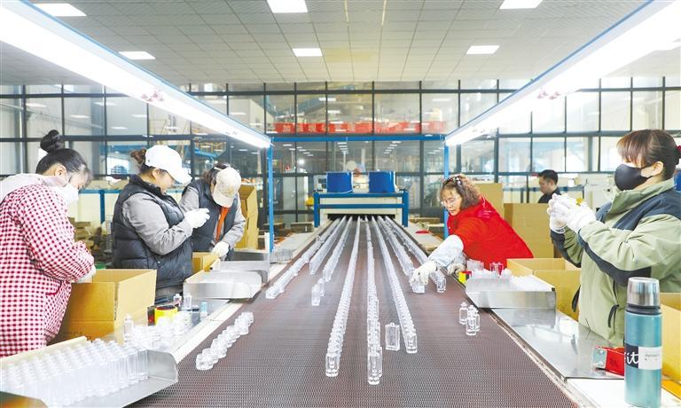 甘肃富地金虹玻璃制品有限公司日用玻璃生产车间,工人们铆足干劲赶订单。