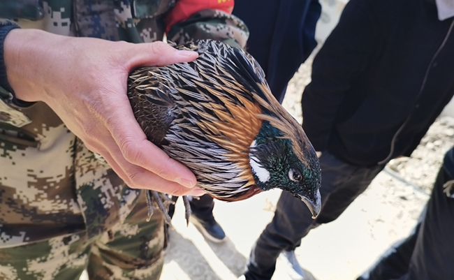 近日,甘肃白龙江博峪河管护中心博峪保护站工作人员在冬季巡护途中发现一只被冻僵在溪水里的勺鸡,只见它浑身结满了冰霜,羽毛被水浸湿,身体瑟瑟发抖,已经失去了行动和飞行能力,工作人员将其捞起送到就近的蜂园子管护所进行救护,通过悉心的照料这只雄性勺鸡于当日下午恢复了活力,被蜂园子管护所工作人员放归大自然的怀抱。