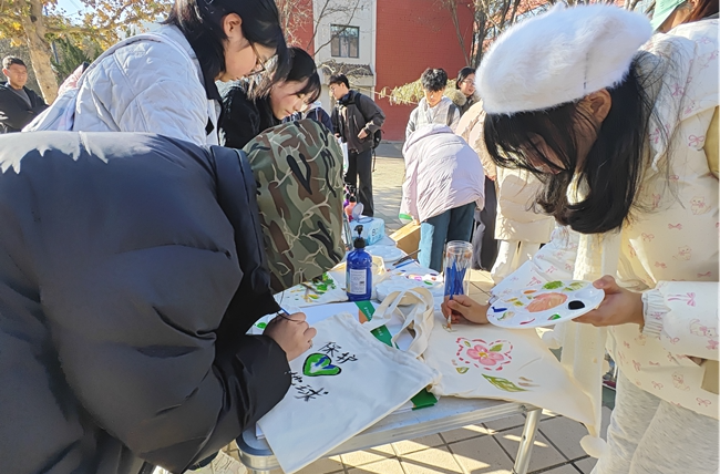 作为现场核心互动环节,“袋走绿意,绘就环保”环保涂鸦大赛人气高涨。活动摊位前,师生们有序领取空白帆布袋与环保颜料,围绕“减塑降污”“绿色校园”“新污染物治理”等主题尽情创作,灵动的线条、鲜明的色彩将环保理念融入艺术创作之中。志愿者全程提供技巧指导,完成后的作品经评审后,优秀作品被留存展示,获奖者领取了专属奖品,现场共发放定制环保帆布袋200余个,所有参与者均带着自己的专属环保单品满载而归,以实际行动替代塑料袋使用。同时,活动现场通过知识问答、互动咨询等形式吸引师生广泛参与,为积极互动者发放文创中性笔200余支及各类环保小礼品,累计发放新污染物治理宣传资料800余份,让环保知识随物料一同走进师生生活。