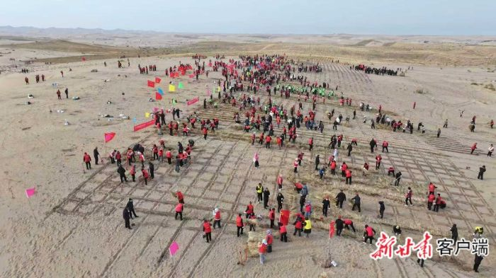 行走其间,传统草方格沙障依然是可靠的基石,但其中已综合配套使用可降解拦沙网等新材料。“这些新材料如同‘生态先锋’,在苗木最脆弱时提供庇护,待其扎根后便功成身退。”民勤县林业和草原局局长姜有恒介绍,这些新材料成本低、效果好,风化后还能改良土壤质量。