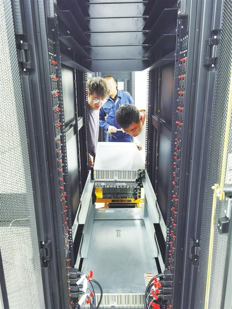 相关数字企业工作人员在中国移动(甘肃·庆阳)数据中心装载机柜。