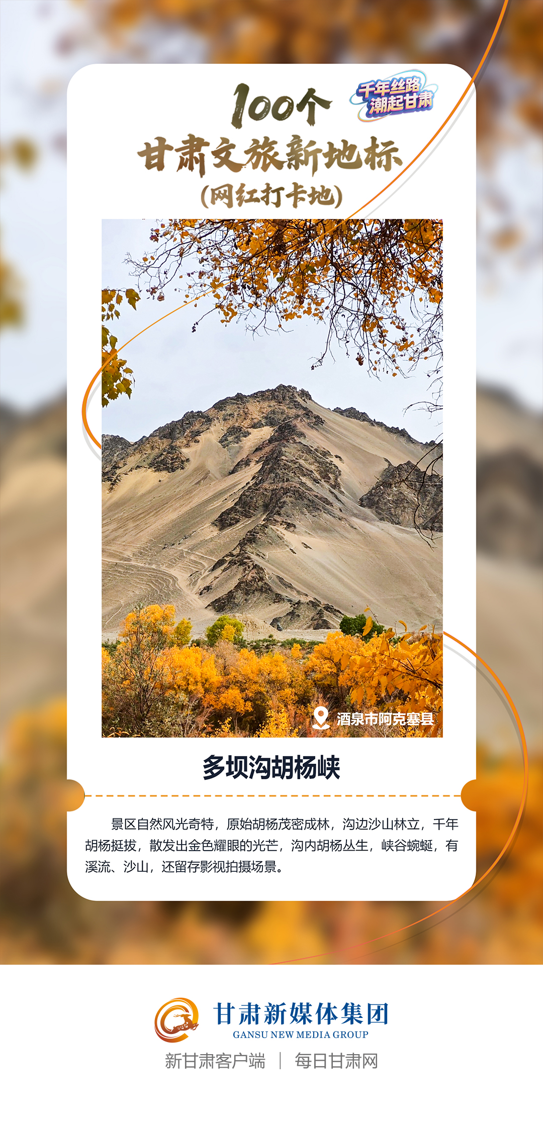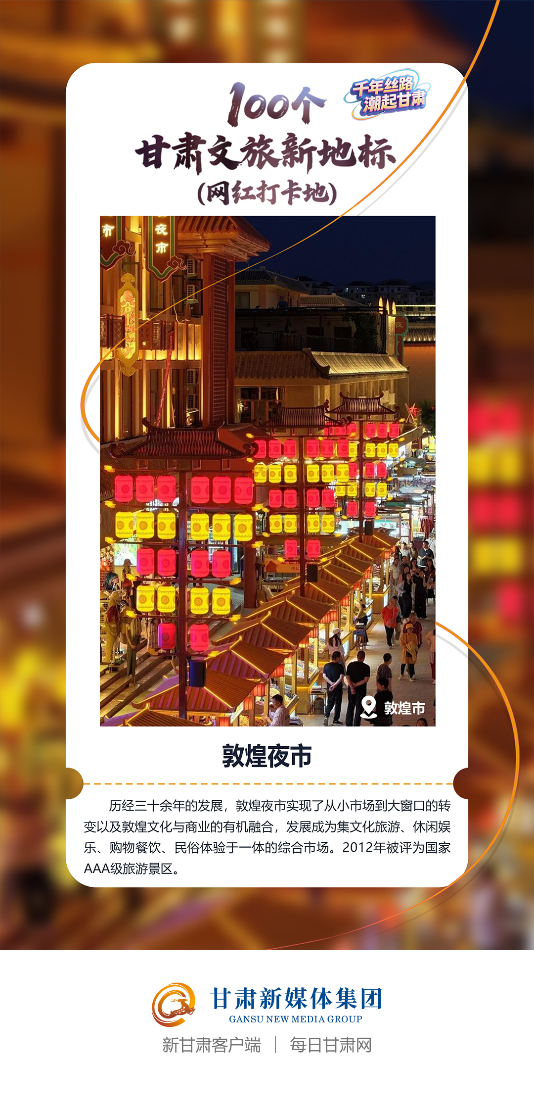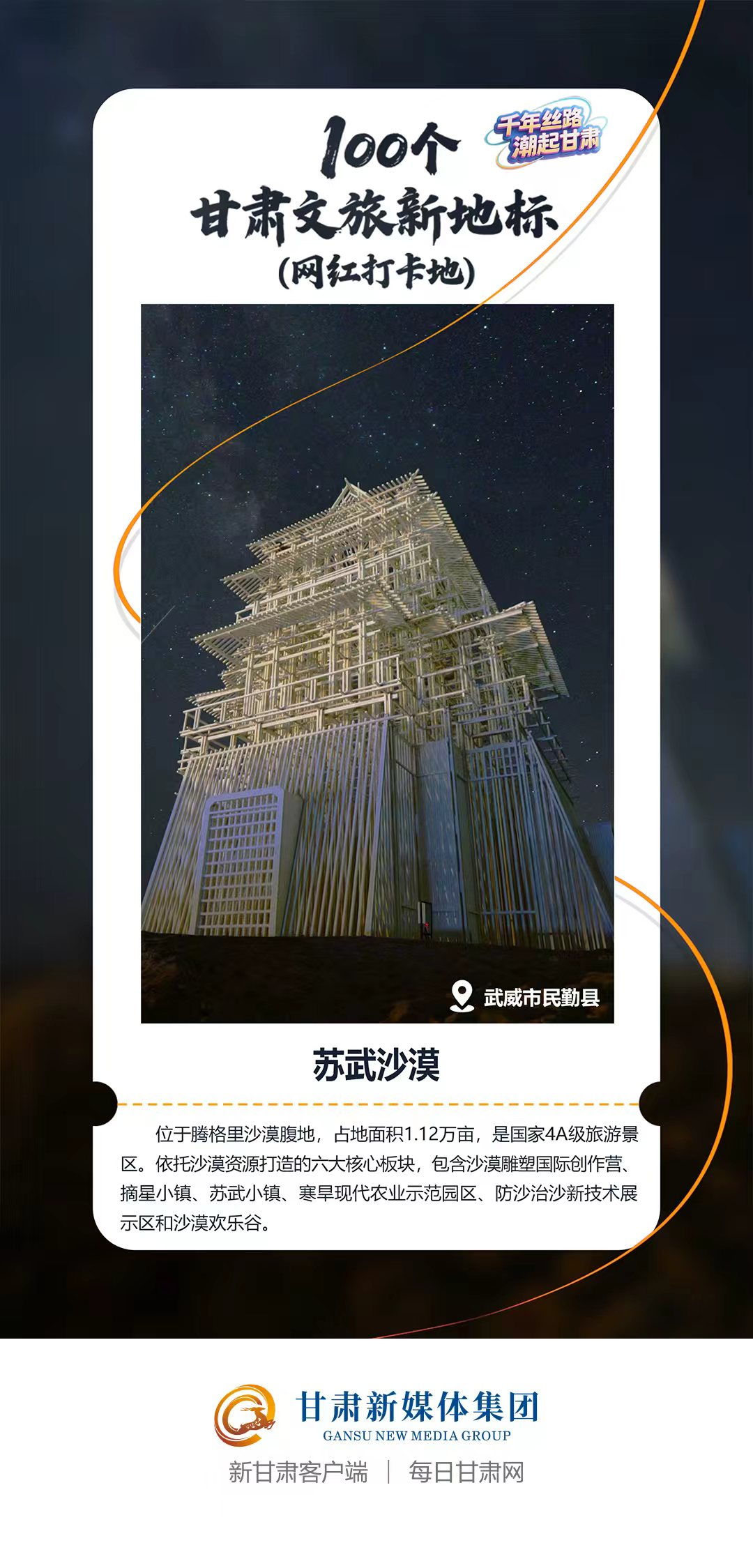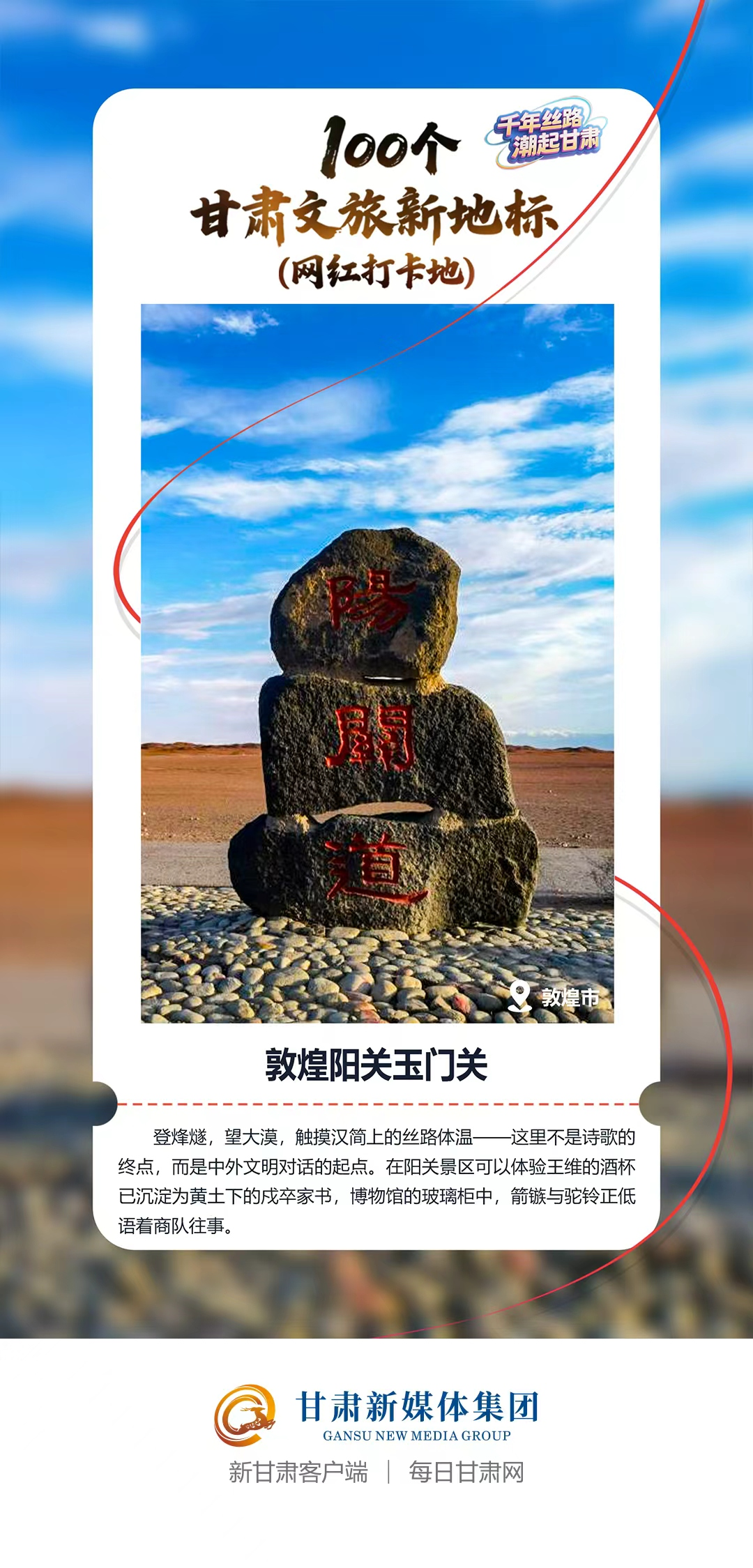 12月5日,100个甘肃文旅新地标(网红打卡地)推选活动结果正式揭晓。河西地区有哪些宝藏文旅新地标上榜?快来一起解锁这份打卡清单!