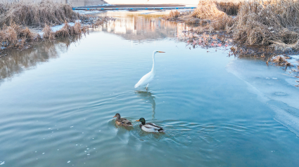 12月8日,通渭县牛谷河畔生机盎然,白鹭舒展羽翼,时而低头啄食、时而翩跹起舞,与嬉戏的绿头鸭、踱步的白腰草鹬等鸟类相映成趣,勾勒出一幅人与自然和谐共生的生态画卷。
