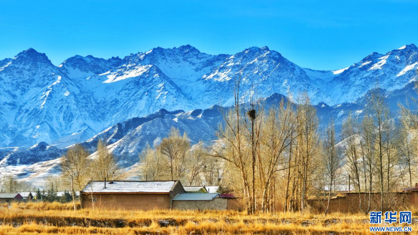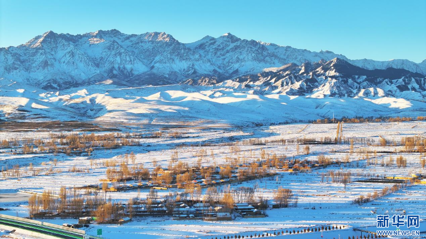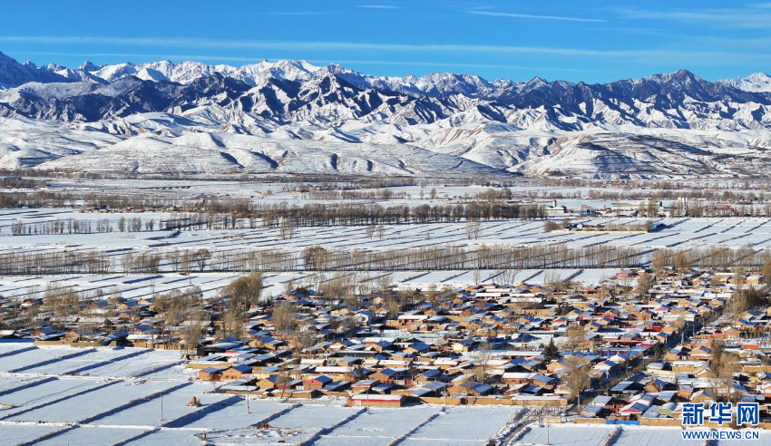 冬日,位于祁连山下的甘肃省张掖市民乐县迎来一场降雪。雪后初霁、阳光洒落,整齐的村舍、辽阔的田畴与层峦叠嶂的山峰相映成景,宛如一幅清逸的水墨长卷。新华网发(王晓泾 摄)