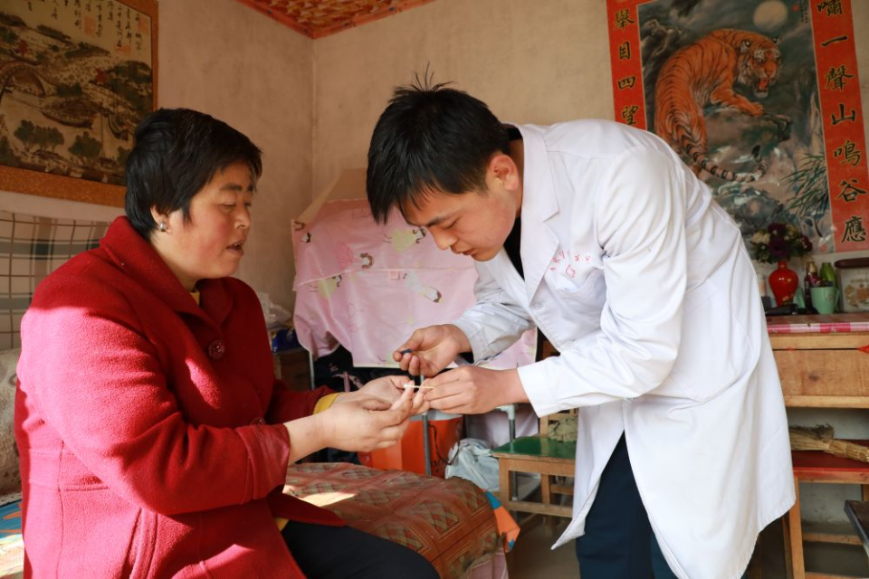 在自家地头享受健康服务,对鹿马岔村的村民来说已很寻常。即便到了冬闲,许多乡亲也经常跑到田地里干农活。王鑫熟悉老乡们的劳作习惯,不管是田间地头、乡间小路还是农家土炕,只要患者在哪里,哪里便是他的诊室。