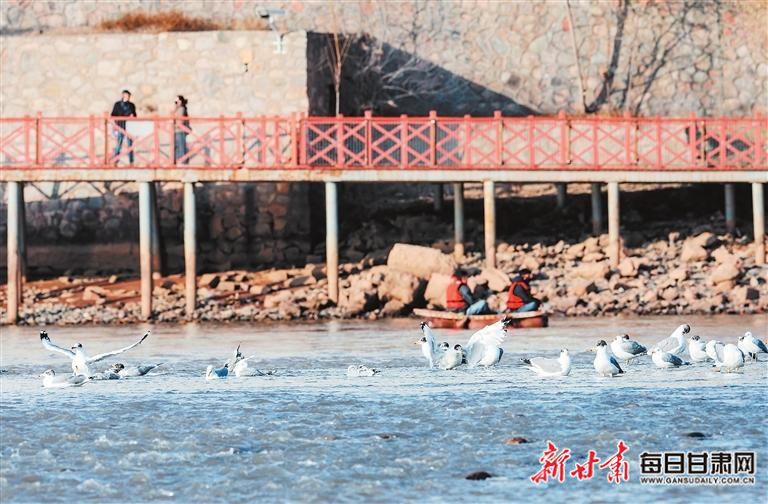 近日,兰州市黄河岸边候鸟翔集,与流淌的河水构成了一幅美丽的冬日画卷。 新甘肃·甘肃日报记者 冯乐凯