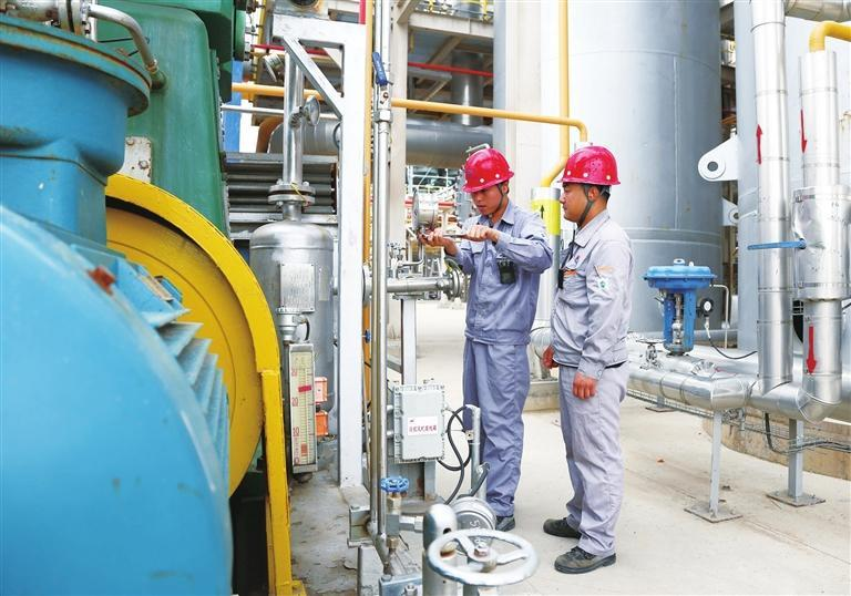 庆阳瑞华能源有限公司员工在天然气生产区检修设备。