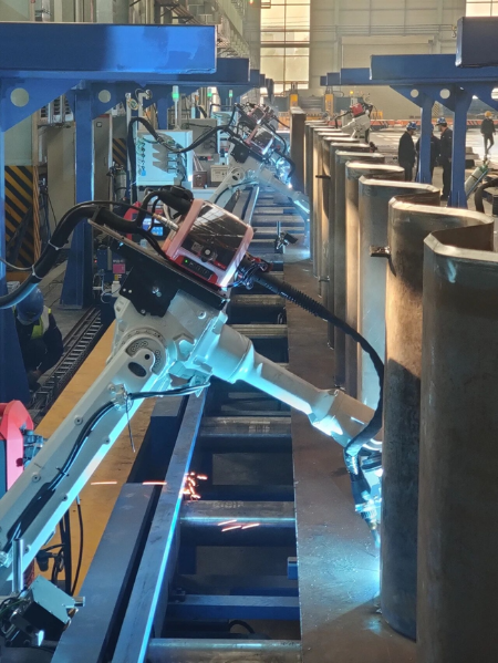 该项目于2022年启动,聚焦标准钢底板波形腹板桥梁机器人智能制造生产线研发以及基于5G物联网的钢桥梁制造全流程智能化与企业信息化管理耦合研究两大核心方向进行技术攻关。经过团队不懈努力,项目成功突破高性能钢材数字化深熔焊、桥梁智能化设计建造一体化等关键技术,建成国内首条波形钢腹板标准箱梁智能制造生产线,实现从零件精密下料、波形钢腹板梁整体组焊、焊接变形矫正、钢结构桥梁智能喷涂等全流程自动化生产和数字化管理。采用5G网络搭建的工业物联网,有效连接企业管理、技术管理、车间生产制造和项目管理,实现钢桥梁制造工艺全流程智能化与企业信息化管理耦合。依托该项目,发表4篇科技论文,获批12项专利,发布《公路钢底板波形钢腹板梁智能化焊接规程》。产品成功应用于清傅、兰临长下坡改造等多个公路建设项目,累计创造产值6000余万元。