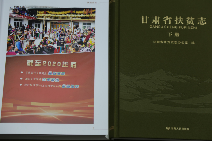 《甘肃省扶贫志》《甘肃省全面小康志》是由甘肃省地方史志办公室组织编纂的全方位记录和展示甘肃省扶贫开发和全面建成小康社会历史进程及重大历史成就的专题性志书。《甘肃省扶贫志》全面客观、翔实准确地记述了中华人民共和国成立至2021年共72年间,在中国共产党的坚强领导下,甘肃省委省政府团结带领全省各族人民消除贫困的历史进程、扶贫开发的重大举措、人民群众的艰苦奋斗、取得的扶贫成就以及探索的扶贫经验,尤其突出记述了党的十八大以来全省脱贫攻坚的历史进程和卓越成就。全志共8编35章105节,约140万字近600幅图照。《甘肃全面小康志》全面客观、翔实准确地记述了改革开放以来至2021年共43年间,全省人民在中国共产党领导下全面建成小康社会的筚路蓝缕的历史进程,重点突出了党的十八大以来,以习近平同志为核心的党中央坚强领导下,全省决战决胜全面建成小康社会的伟大历程和巨大成就。全志共5编25章95节,约125万字600多幅图照。两志直观呈现了“全国脱贫看甘肃”的特殊贡献,为后人留存了“何以脱贫”“何以小康”的历史答案。