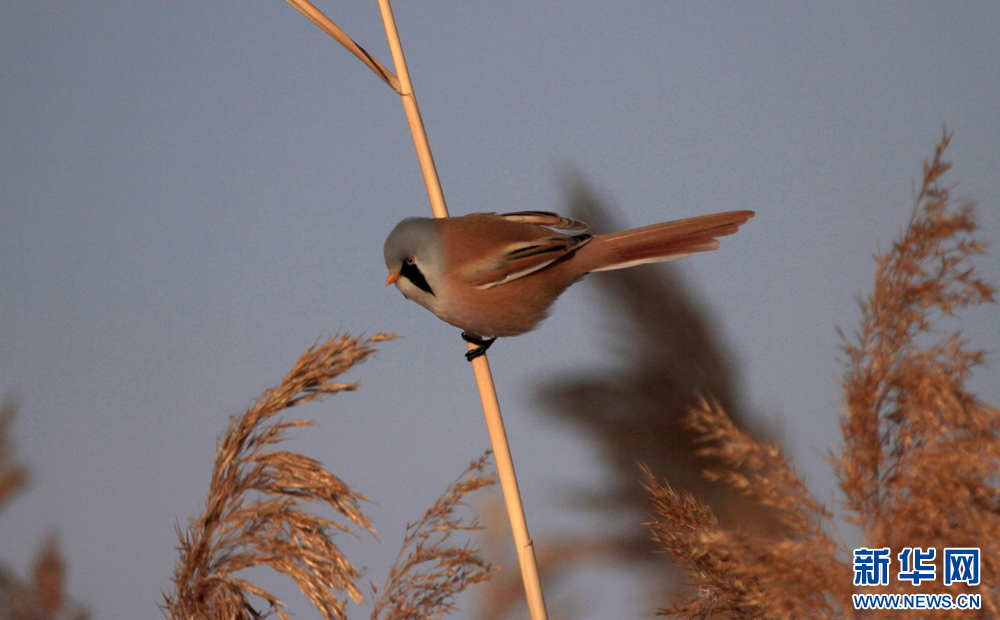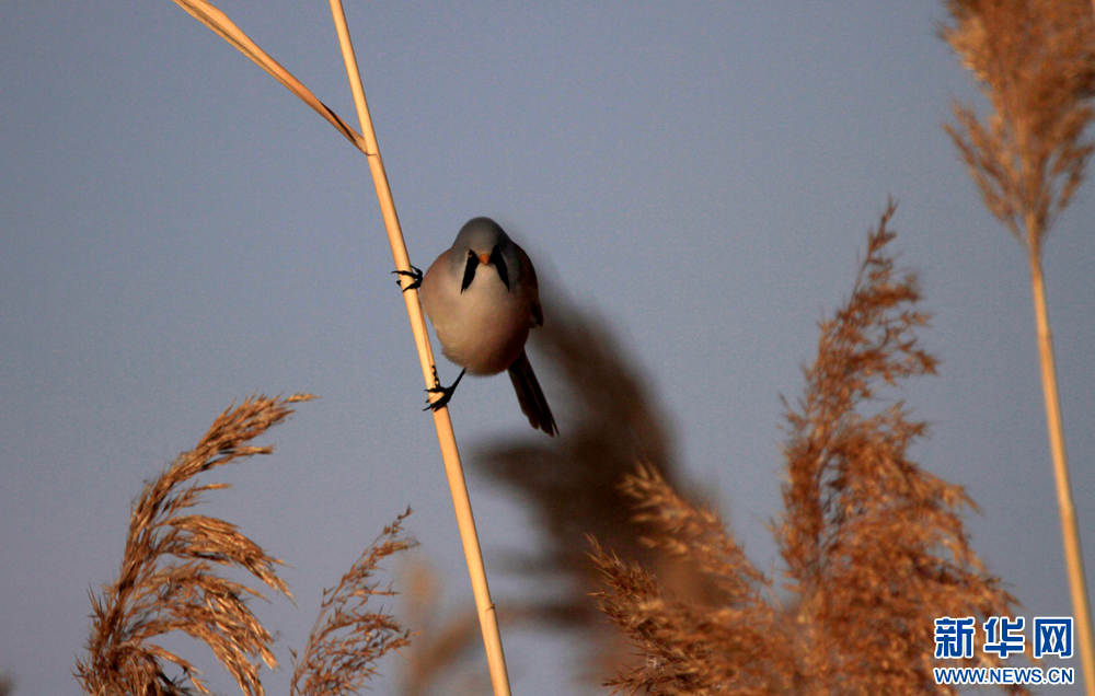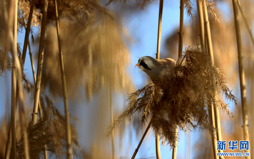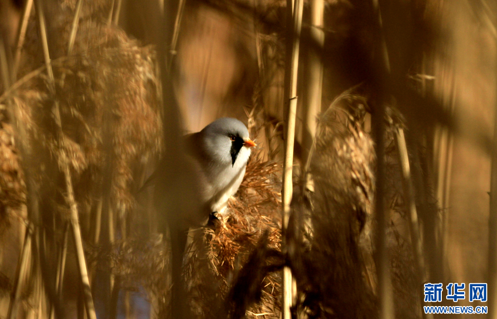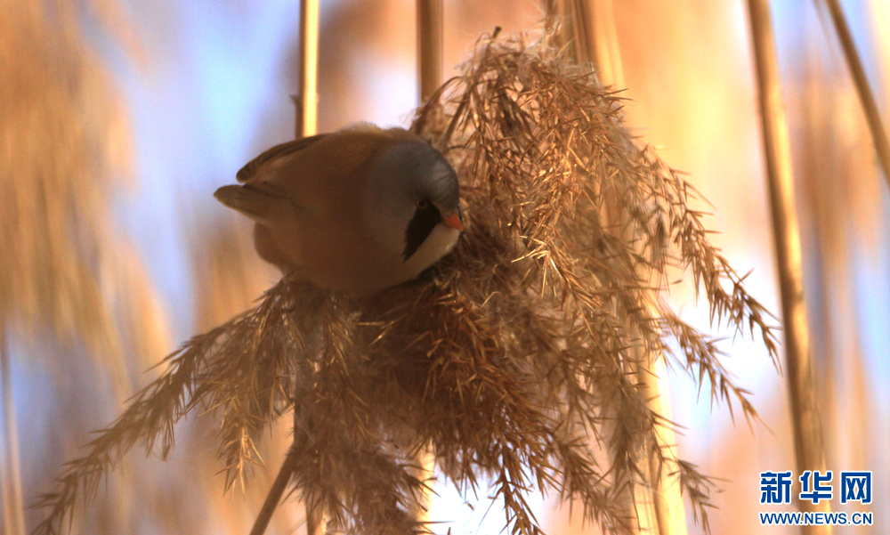 冬日里,在甘肃张掖国家湿地公园的芦苇丛中,“小萌鸟”文须雀跳跃、攀爬,呆萌可爱。新华网发(陈礼摄)