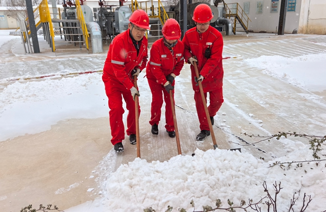 提前预警筑防线,精准防控守安全。面对寒潮风雪来袭,该区迅速启动极端天气应急预案,以“雪为令、即刻行动”为准则,迅速发布车辆升级管控通知,督促辖区两座输油站压紧压实安全生产责任,同时依托视频监控系统对生产区域实行全天候动态监测,将“清除积雪、巡查隐患”作为关键抓手,全方位织密寒潮降雪天气下的安全生产防护网,为原油储输平稳运行筑牢第一道屏障。