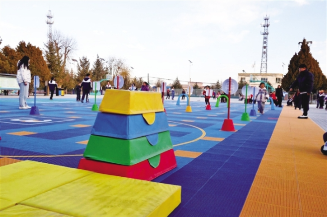 “从前,学校操场是水泥地,孩子们课间奔跑玩耍,我们很担心,害怕他们受伤。如今600平方米的现代化操场,安全、防滑又有弹性,有效保障了孩子们的运动安全与健康。”金佛寺中心小学副校长杨舒说。