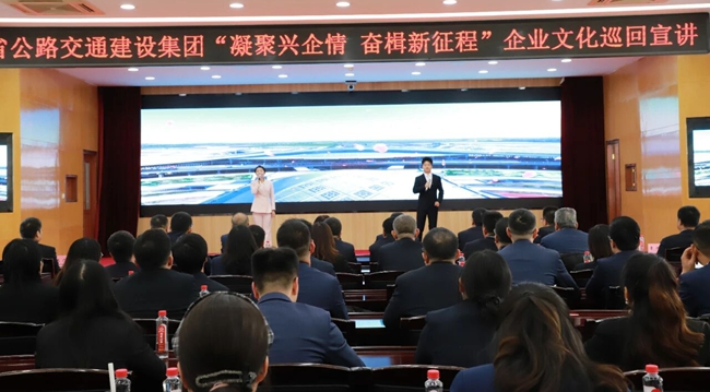 宣讲现场,来自集团公司10家企业和公路运营公司的36名宣讲人员,通过主题演讲、情景剧表演等形式,深情讲述了省公交建人在不同岗位、不同领域的奋斗故事与使命担当。从技术攻坚到运营服务,从雪域高原到大漠戈壁,从历史传承到未来展望,共同绘就了一幅公交建人砥砺前行、担当奉献的壮美画卷,生动诠释了集团企业文化的精神内核,引发了在场观众的强烈共鸣。