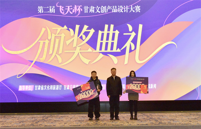 12月25日下午,由甘肃省文化和旅游厅、甘肃日报报业集团指导,兰州飞天剧院主办,奔流新闻承办的第二届“飞天杯”甘肃文创产品设计大赛颁奖典礼在宁卧庄宾馆举行。省内文旅系统代表、高校师生、文创设计师及媒体代表齐聚一堂,共同见证甘肃文创产业的又一次高光时刻。