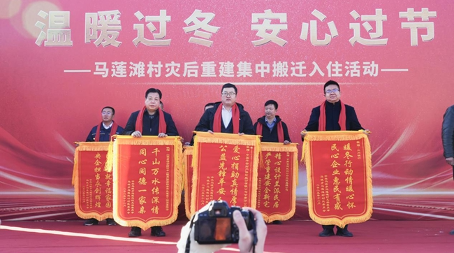 12月29日上午,榆中县灾后重建安置点集中搬迁入住主会场活动在榆中县马坡乡马莲滩村、旧庄沟村举行。活动现场,兰州银行向安置点群众专项捐赠48.1万元购煤款,以实打实的举措为受灾群众温暖过冬送上贴心关怀、提供坚实保障。