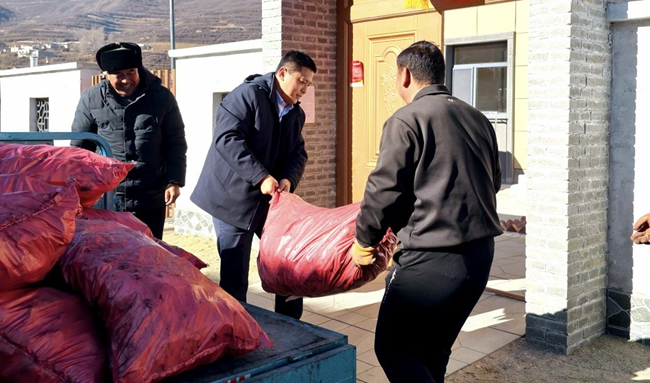 活动结束后,兰州银行工作人员协同村委会干部,共同将煤炭逐一分发至每家每户。望着整齐堆放的煤炭,群众脸上露出了安心的笑容,融融暖意在寒冬中悄然传递。