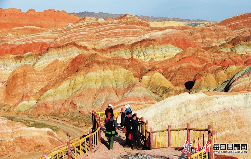 游客在张掖丹霞国家地质公园感受大自然的鬼斧神工。新甘肃·甘肃经济日报记者 瞿娟 摄