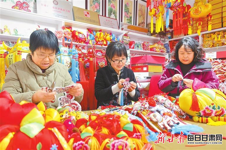 近日,庆阳市西峰区非遗工坊绣娘们赶制马年元素香包挂件。新甘肃·甘肃日报通讯员 盘小美