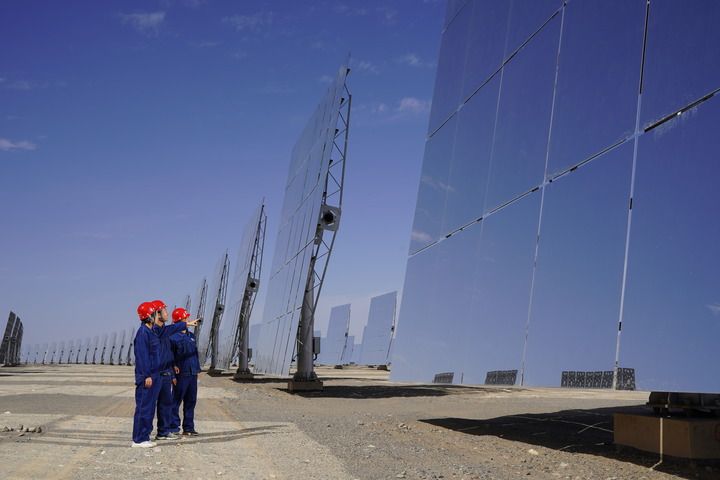 国网酒泉供电公司员工在敦煌首航高科光热电站检查设备。新华社发