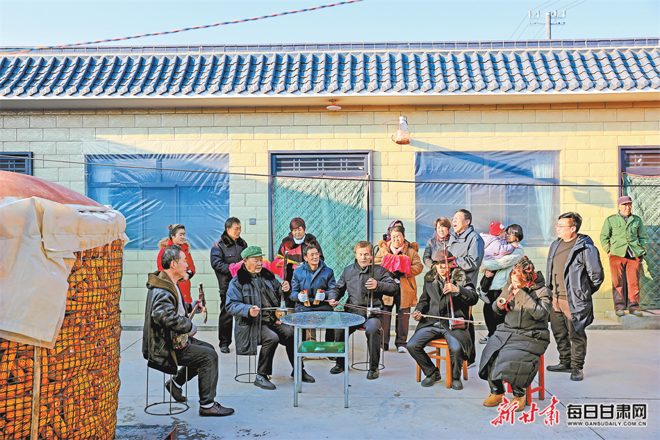 群众在安定区西巩驿镇花沟村搬迁安置点排练春节演出节目。