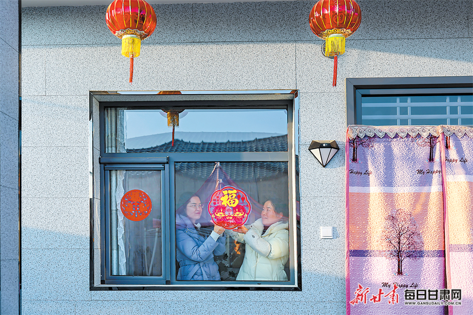 在定西市安定区西巩驿镇花沟村安置点,王玉福一家正围坐在客厅里吃暖锅,和煦的阳光透过窗户,洒下一屋温馨;村民水学忠一家正在贴福字和窗花,大家脸上洋溢着幸福的笑容。