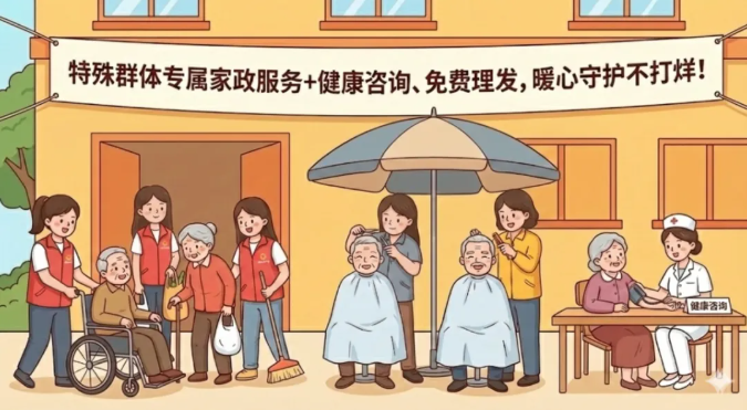 除了优惠服务,大集还充满了温情。活动主打“暖心守护不打烊”理念,提供特殊群体专属家政服务,并现场增设健康咨询、免费理发等公益项目,让社区关怀在这个冬天持续升温。