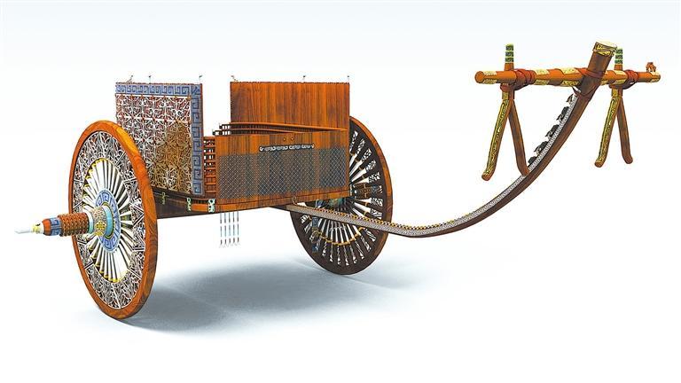 马家塬西戎墓葬出土的战国马车复原效果图。