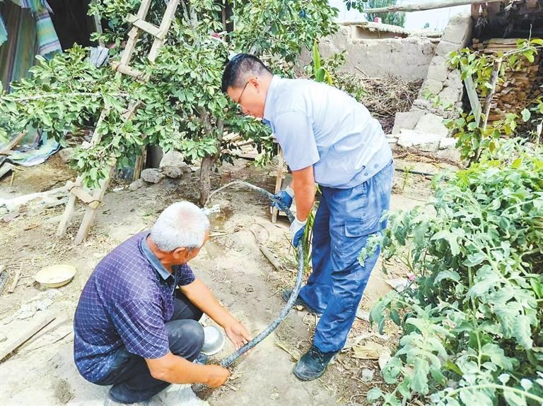 水管员为河口村独居老人维修入户水管。