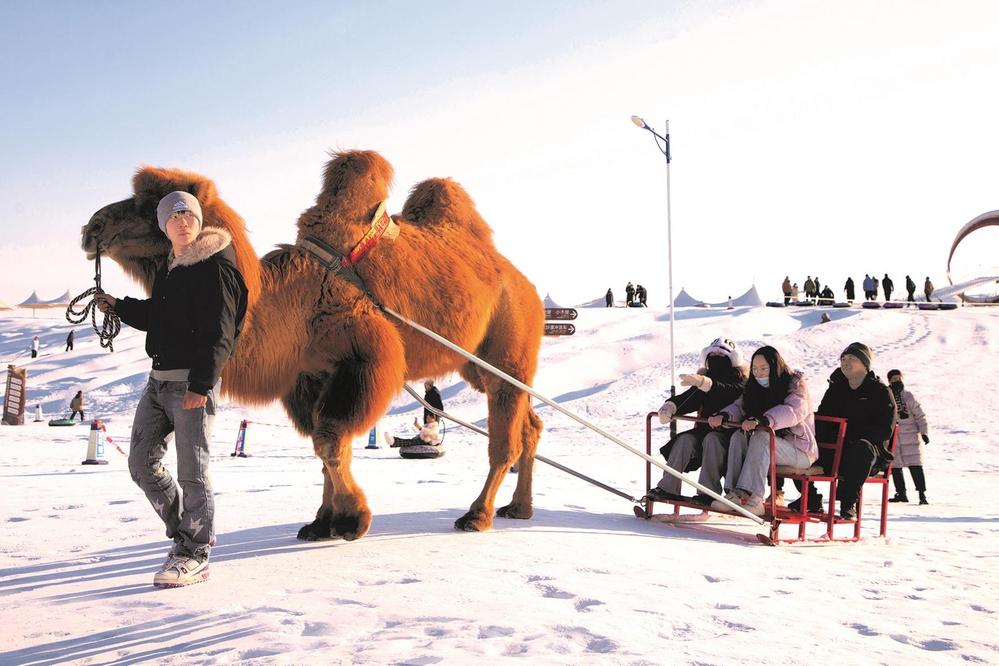 连日来,众多游客在张掖国家沙漠体育公园冰雪嘉年华体验冰雪乐趣,冰雪滑道、碰碰球、雪地摩托车、骆驼雪车等多样的冰雪活动为市民游客献上冬日文旅盛宴。 李自海 摄