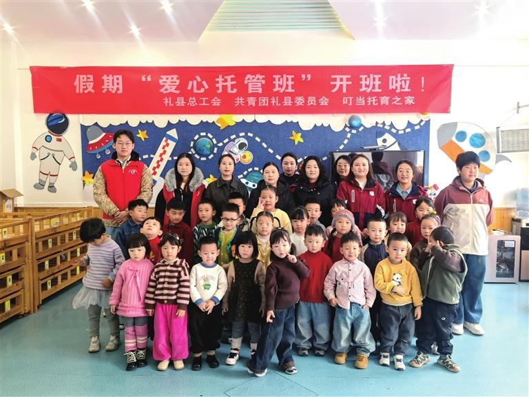 随着寒假的到来,1月12日,由礼县总工会、共青团礼县委员会联合礼县响叮当幼儿园、叮当托育之家共同打造的爱心托管班正式开班,开启了充实有趣的假期生活。这一暖心举措不仅破解了职工“假期带娃难”的燃眉之急,更以专业、普惠的服务,让工会关怀直达全县各单位工会职工心坎。