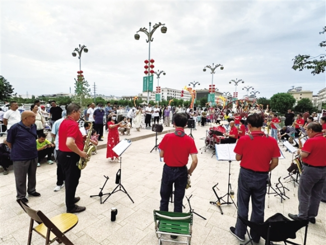 由敦煌市文联主办的阳光乐队管乐演奏活动在党河风情线举办。