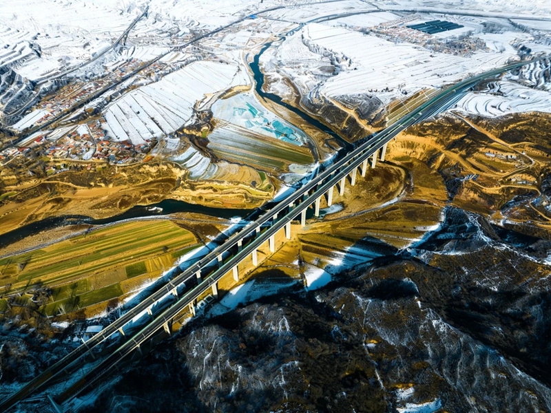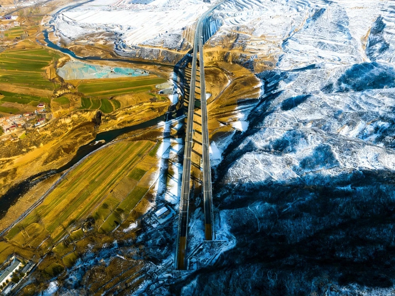 穿陇东群山,跨泾渭支流,甘肃公交建集团建设运营的彭大(宁夏彭阳县至平凉至陕西陇县大桥村)、灵华(平凉市灵台县至华亭市)高速两条长龙正在黄土高原的褶皱里苏醒。遥想昔日“岭坂风回树郁盘”的陇坂行路之艰,再看今朝,天堑已成历史注脚。峡门大桥连拱如虹,倒映冰封河面;徐家山隧道千米穿岭,打通古道畏途;灵华高速沿线峰峦覆雪,新涯湾大桥如银簪绾住峡谷云鬓,桥隧相连间,工程智慧与“白云青霭”的山水意境浑然相融。