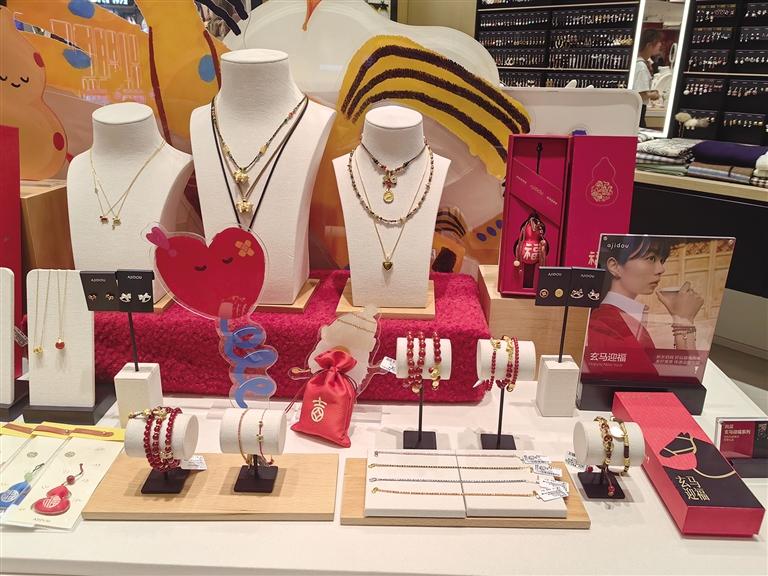“红色在中国文化里本就寓意吉祥,马元素则象征着活力与进取,新年穿红配马,既有传统年味,又能让自己心情更愉悦。”市民安颖笑着展示自己的新年采购清单:红色内衣、袜子,还有印着小马图案的红色手机壳。和安颖一样的年轻人不在少数。记者走访发现,各大商场饰品柜台、网络直播间里,水晶、朱砂材质的红色手串,以及各类马形吊坠、摆件都被摆在显眼位置,吸引着年轻人驻足挑选。