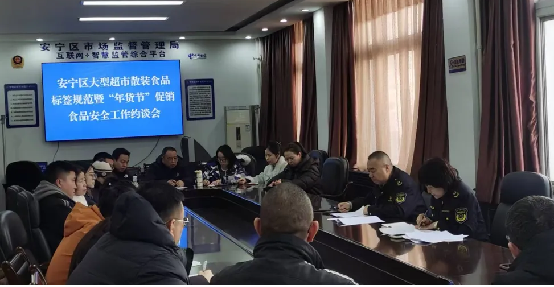 岁末年初,年货消费进入旺季,为规范辖区大型超市散装食品经营行为,压实食品安全主体责任,保障消费者“舌尖上的安全”与公平交易权益,近日,兰州市安宁区市场监督管理局组织召开大型超市散装食品标价规范暨年货节促销食品安全工作约谈会,辖区各大型超市店长、食品总监、食品安全员及区市场监管局相关业务负责人参会。