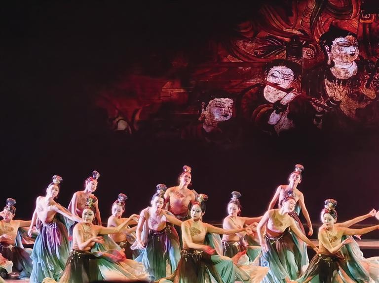 展演现场,兰州德艺坊相声社带来情景相声《天马踏春游甘肃》,用诙谐幽默的语言串联起甘肃文旅亮点;童声合唱《敕勒歌》,以清澈嗓音唱响千古名篇;现代敦煌舞《守望》,则让千年敦煌文化在舞台上焕发出新的生机。甘肃省陇剧院、甘肃秦腔艺术剧院等十余家院团联袂献演戏曲联唱《梨园锦绣》,汇聚陇剧、秦腔、京剧等多个剧种,尽显戏曲艺术的博大精深;甘肃省歌舞剧院的舞蹈《幻境·伎乐天》、甘肃省歌剧院的歌曲《带我去火星》、甘肃省杂技团的高空技巧《愿景》,以精湛的技艺和创新的编排,赢得现场观众阵阵掌声。