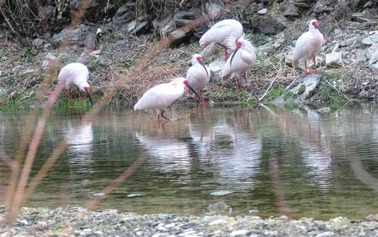 1月23日,康县云台镇迎来惊喜一幕——当地首次观测到7只国家一级保护动物朱鹮在此栖息觅食。被誉为“东方宝石”的珍稀鸟类朱鹮,为冬日的云台增添了灵动生机。