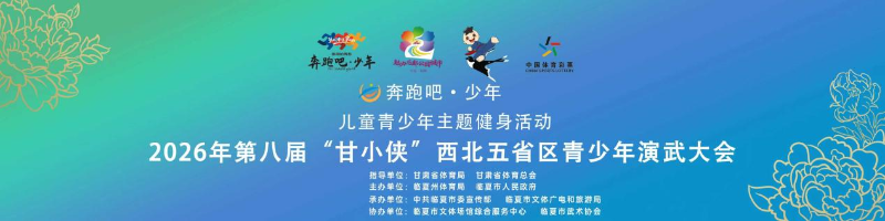 甘肃临夏,以武会友,薪火相传。承载着西北地区无数青少年武术梦想的年度盛会——第八届“甘小侠”西北五省区青少年演武大会,已正式定档。本届大会将于2026年2月6日至8日,在历史悠久、民族风情浓郁的甘肃省临夏市奥体中心体育馆隆重举行。一场传承与超越并重、竞技与文化交融的武林篇章,即将全新开启。