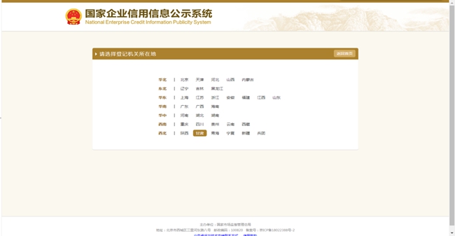 第二步:进入首页后,点击“企业信息填报”图标,在弹出页面选择所在省份(甘肃)后,进入企业信息填报页面。