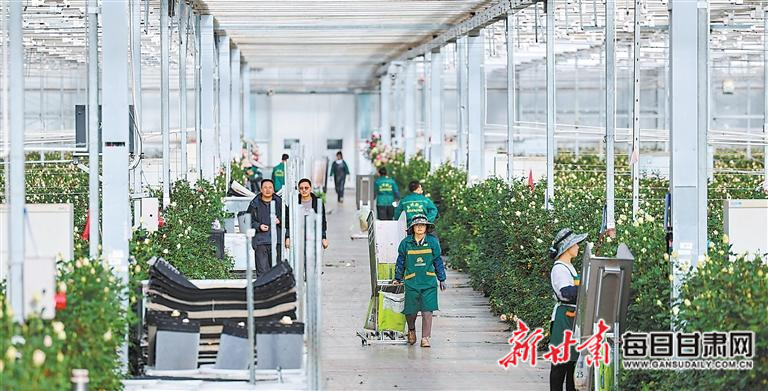 1月28日,兰州新区现代农业示范园花卉产业基地内,工人忙着采摘、分拣、包装鲜切玫瑰。 新甘肃·甘肃日报通讯员 侯崇慧