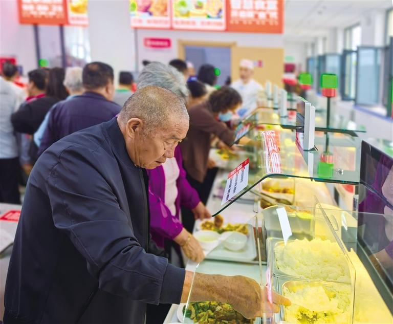 在餐品区,记者看到各色菜品荤素搭配、错落摆开,清炒时蔬鲜翠欲滴,红烧荤菜色泽油亮,蒸炖汤品氤氲着热气,杂粮主食暄软飘香。荤素、杂粮、汤品的科学配比,既合老人口味,又能让他们摄入足量的蛋白质与维生素——营养均衡的巧思,就藏在这一餐一饭的细节里。“所有菜品都是现场加工制作,坚持菜品少油、少盐、控糖,注重营养均衡。同时通过智能打餐系统和AI炒菜机器人系统,不仅提升老人的就餐体验,也为食堂带来了更多的便利性和灵活性,减少排队时间,有效减少食物浪费。”兰州佳林宜信健康养老产业有限公司董事长张旭蕾介绍说。